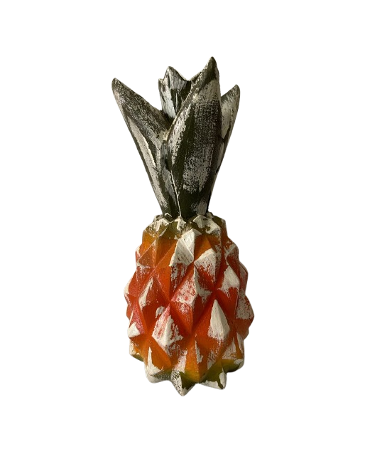 Traga charme, personalidade e aquele toque acolhedor para sua casa com este abacaxi esculpido artesanalmente em madeira. Cada peça é tallhada à mão e finalizada com pintura artesanal, tornando cada unidade única — nenhuma é exatamente igual à outra.